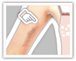 - 脂肪吸引管の先端から出る特殊な振動エネルギーであるベイザー波で脂肪を遊離、また硬い結合組織も軟弱化させ吸引していく。ベイザー波は組織を壊さないため、体への負担が少ない。